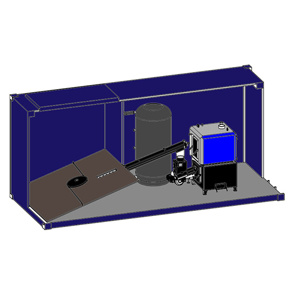 A konténerbe 110 kW-ig telepíthető bármilyen típusú kazán.