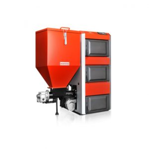 A magas hőmérséklet az öntöttvas égőben lehetővé teszi a füstmentes égést, alacsony emissziók biztosítását, és magas hatékonyságot 87-89%. Az egyszeri tüzelőanyag betöltés a kazán több órás kiszolgálás nélküli üzemelését teszi lehetővé. A vezérlő ellenőrzi a víz hőmérsékletét a kazánban, az adagoló működését, a légbefúvó ventilátort, a szivattyú munkáját. A kazán vezérlőegysége közvetlenül megvezérelhető szobatermosztáttal.